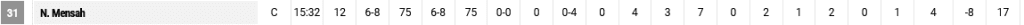 Συγκεκριμένα ο Μένσα αγωνίστηκε για 15:32, έχοντας ως απολογισμό 12 πόντους με 6/8 δίποντα. Παράλληλα ο Γκανέζος σέντερ είχε επτά ριμπάουντ, δύο τάπες και ένα κλέψιμο, συγκεντρώνοντας 17 βαθμούς στο σύστημα ranking, όντας δεύτερος, μαζί με τον Φαλ, πίσω μόνο από τον Σάσα Βεζένκοβ, που είχε 34 PiR.