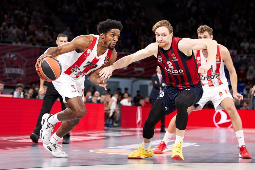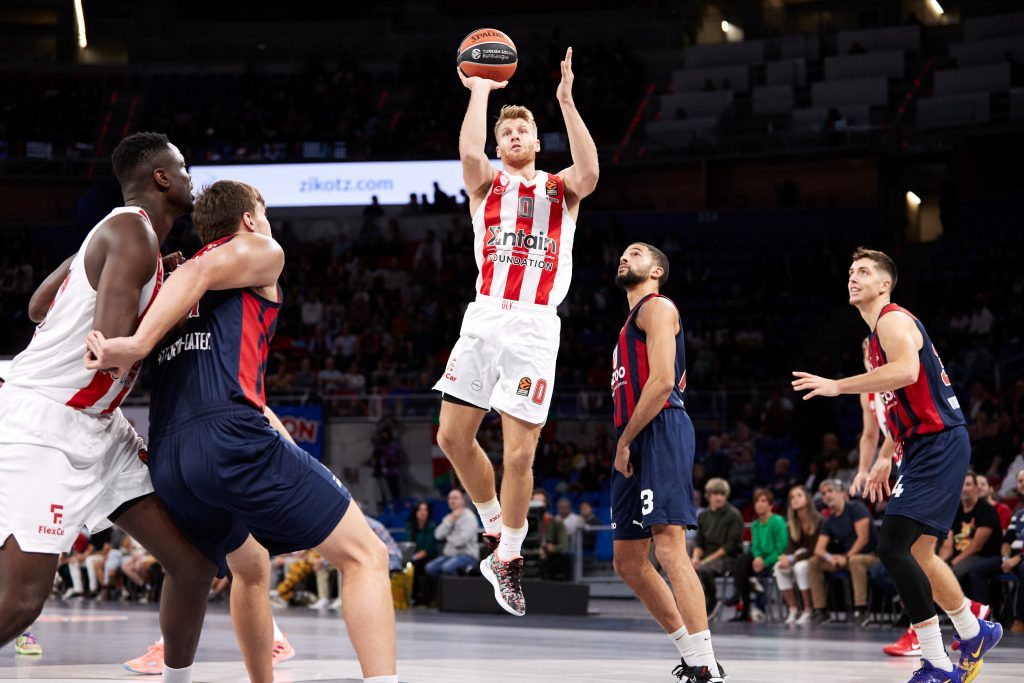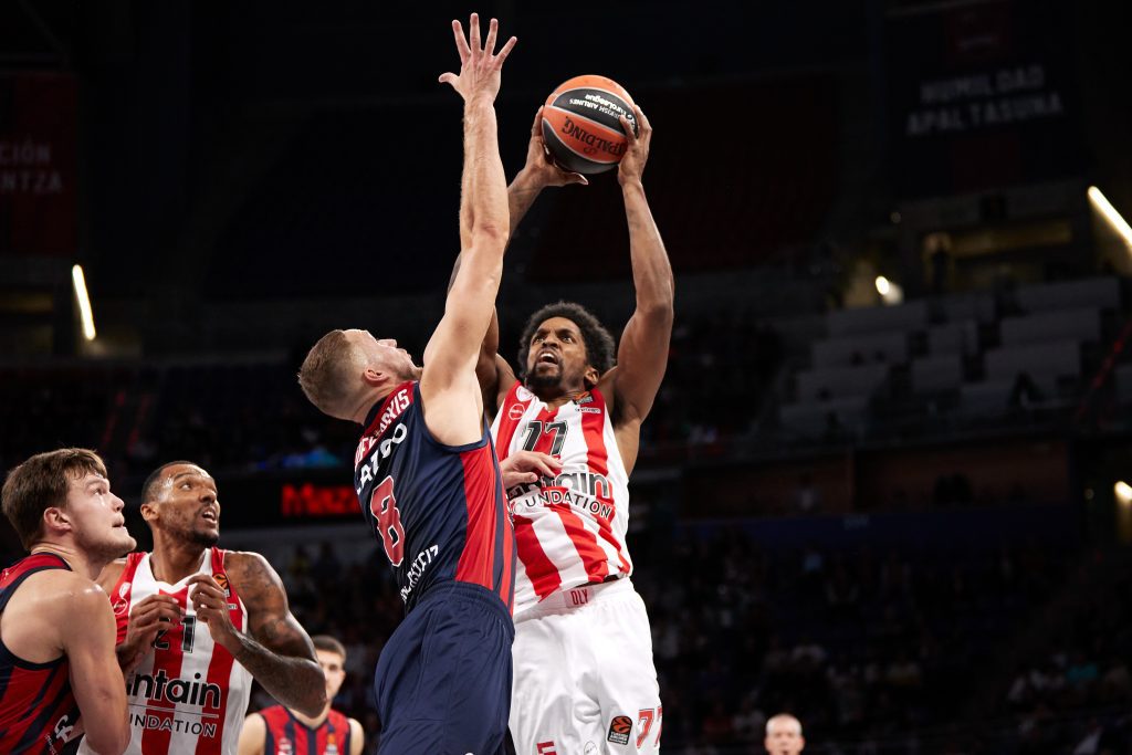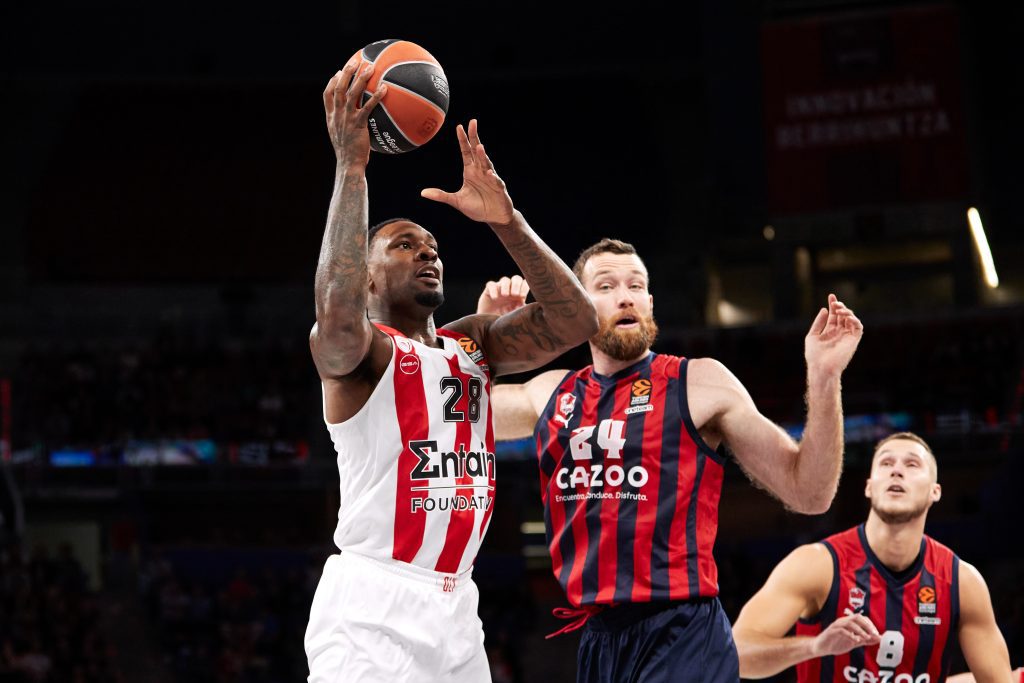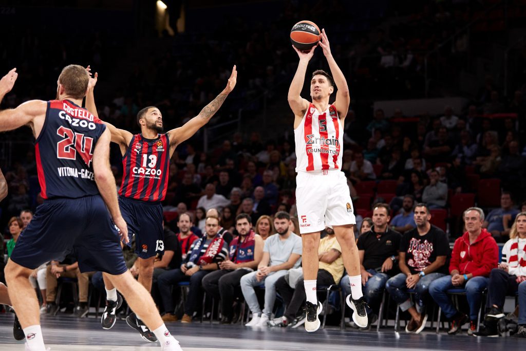 Δείτε χαρακτηριστικές φωτογραφικές στιγμές της αναμέτρησης του Ολυμπιακού με την Μπασκόνια, για την 4η αγωνιστική της Ευρωλίγκας.