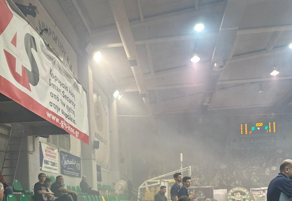 Όσον αφορά την συνέχεια της αναμέτρησης, έχει διαταχθεί η εκκένωση του κλειστού εντός 45 λεπτών, σε διαφορετική περίπτωση, θα υπάρξει οριστική διακοπή του αγώνα.