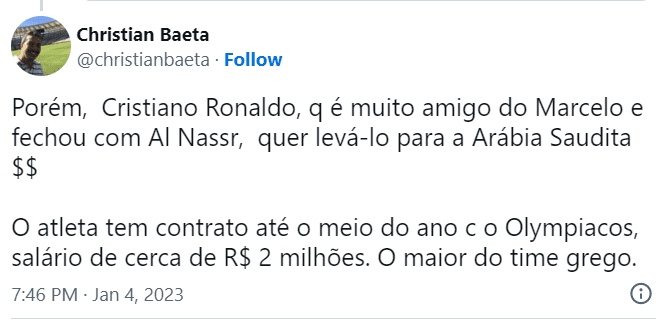 Συγκεκριμένα, δημοσιεύματα από την Βραζιλία επαναφέρουν ενδιαφέρον ομάδων για να τον εντάξουν στο δυναμικό τους, όπως οι Σάο Πάολο, Μποταφόγκο και Φλουμινένσε, ενώ από την Αμερική γίνεται λόγος ακόμη και για την Αλ Νασρ του Κριστιάνο Ρονάλντο.