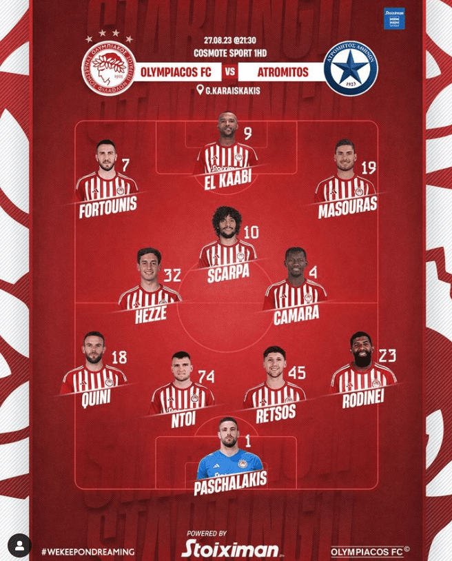 Στο κέντρο ο Εσε με τον Καμαρά και τον Σκάρπα, στα εξτρέμ με Φορτούνη και Μασούρα, στην κορυφή της επίθεσης ο Ελ Κααμπί.