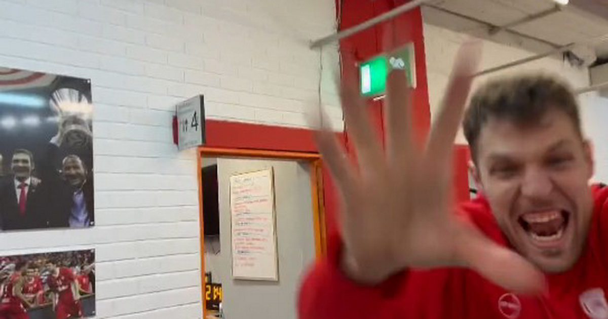 Αυτή τη φορά, το.. θύμα του Σάσα Βεζένκοβ, στο γνωστό “ερυθρόλευκο” τελετουργικό πριν την είσοδο της ομάδας στο παρκέ του ΣΕΦ, δεν ήταν κάποιος συμπαίκτης του Βούλγαρου φόργουορντ, αλλά η… κάμερα του OlympiacosBC TV.