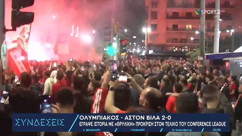 Το πάρτι δεν σταματάει ούτε στους δρόμους του περιμετρικά του Φαληρικού σταδίου, ενώ στον Πειραιά οι φίλοι του Ολυμπιακού έκαναν ότι είναι δυνατό για να δείξουν την χαρά τους που είναι τεράστια μετά την πρόκριση στον τελικό του Conference League.