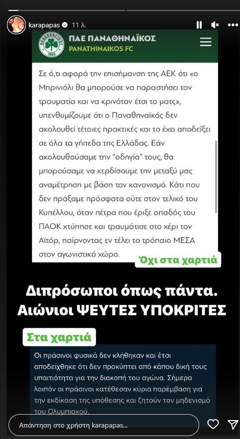 Ο Κώστας Καραπαπάς θέλησε να βάλει τα πράγματα στη θέση τους και με αναρτήσεις «φωτιά», πετάει σπόντες για την γενικότερη στάση των «πρασίνων».