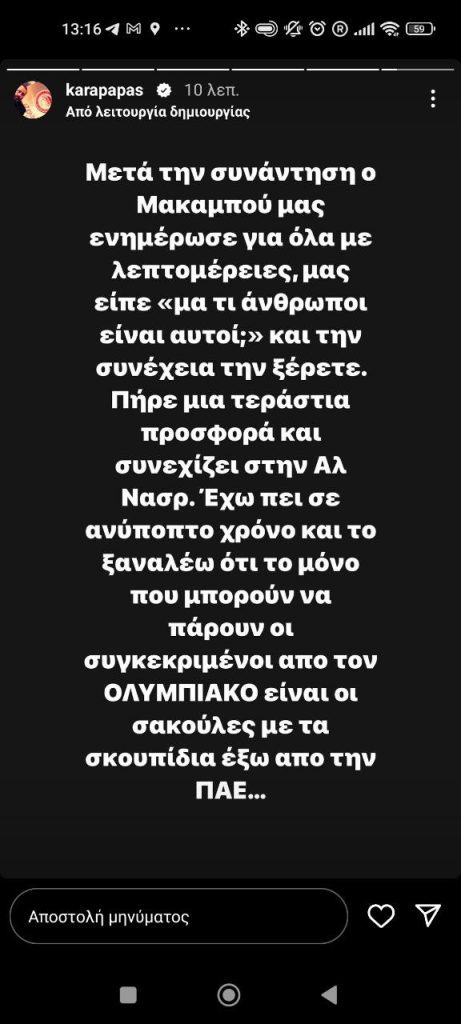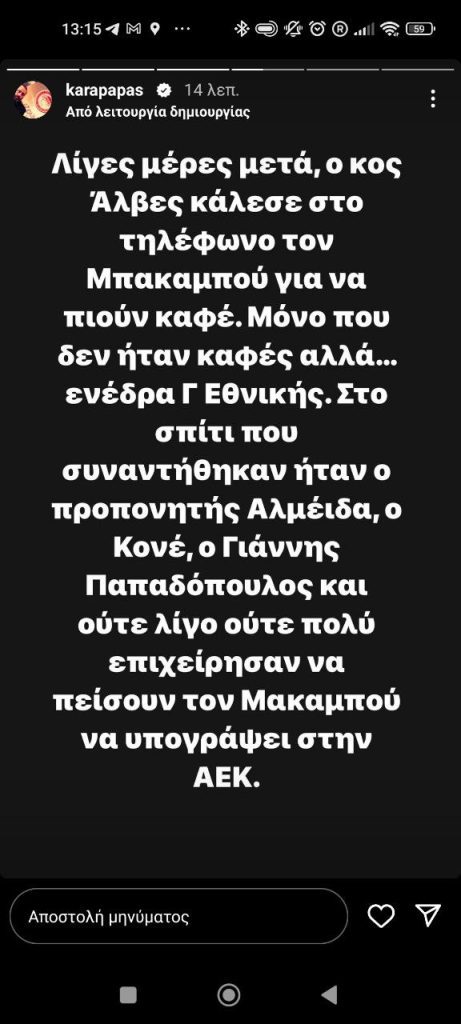 Ο εκ των αντιπροέδρων της ΠΑΕ Ολυμπιακός, Κώστας Καραπαπάς, ανέφερε σε stories του στο Instagram ότι η ΑΕΚ επιχείρησε να πείσει μέσω των ανθρώπων της τον Σεντρίκ Μπακαμπού για να πάει στην Ένωση ως ελεύθερος.