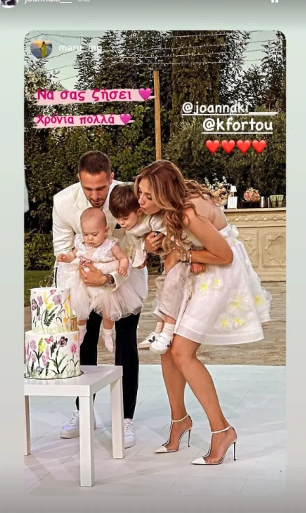 Ο Κώστας Φορτούνης, βάφτισε την κόρη του μερικές μέρες μετά την κατάκτηση του Conference League με την ομάδα του. Ο αρχηγός του Ολυμπιακού και η σύζυγός του, Ιωάννα Καταραχιά, που έχουν ακόμη έναν γιο, απέκτησαν το δεύτερο παιδί τους τον Ιούνιο του 2023 και έναν χρόνο μετά, την Κυριακή 2 Ιουνίου, το βάφτισαν στα Σπάτα.