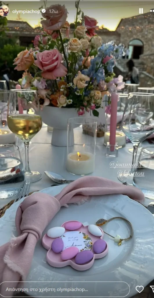 Μετά τη βάφτιση, ακολούθησε γλέντι σε κέντρο δεξιώσεων, με την οικογένεια να σβήνει κεράκια από μια τούρτα. Οι καλεσμένοι του ποδοσφαιριστή και της συζύγου του, ανέβασαν φωτογραφίες και βίντεο από τη βάφτιση, τα οποία η Ιωάννα Καταραχιά, αναδημοσίευσε μέσα από το προφίλ της. Καλεσμένη, μεταξύ άλλων, ήταν και η σύζυγος του Βασίλη Σπανούλη, Ολυμπία Χοψονίδου, που έκανε με τη σειρά της, μια σχετική ανάρτηση από το τραπέζι με τον ροζ στολισμό.