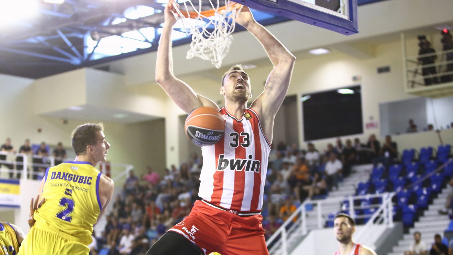 Μία από τις εντυπωσιακότερες στιγμές του πρώτου ημιτελικού ήρθε δια χειρός Νίκολα Μιλουτίνοβ, ο οποίος… δοκίμασε τις αντοχές του καλαθιού του Περιστερίου.