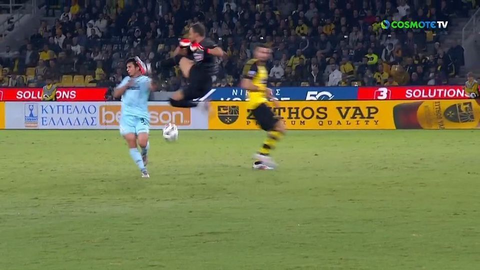Ο VAR κάλεσε τον Σιδηρόπουλο για να δει την φάση και να αναβαθμίσει την κάρτα σε κόκκινη, αλλά ο διαιτητής της αναμέτρησης διαφώνησε μαζί του.