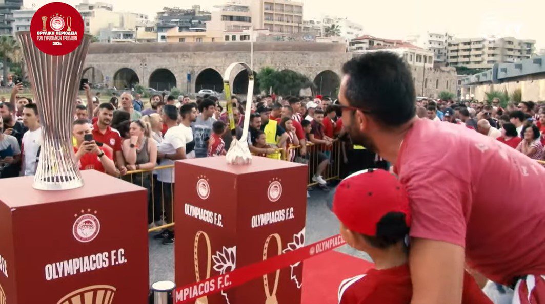 Δείτε το video του Olympiacos TV από το Ηράκλειο της Κρήτης και το πλήθος κόσμου που βρέθηκε εκεί για να βγάλει μία φωτογραφία με τα Ευρωπαϊκά τρόπαια του Ολυμπιακού!