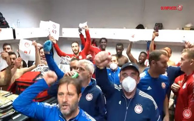 Ο Ολυμπιακός πανηγύρισε το 47ο πρωτάθλημα του μέσα στην Τούμπα και η κάμερα του Olympiacos TV κατέγραψε τους έξαλλους πανηγυρισμούς στα αποδυτήρια, αλλά και στο αεροπλάνο της επιστροφής, με τους “ερυθρόλευκους” να γιορτάζουν και για την πρόκριση του μπασκετικού τμήματος στο Final Four του Βελιγραδίου.