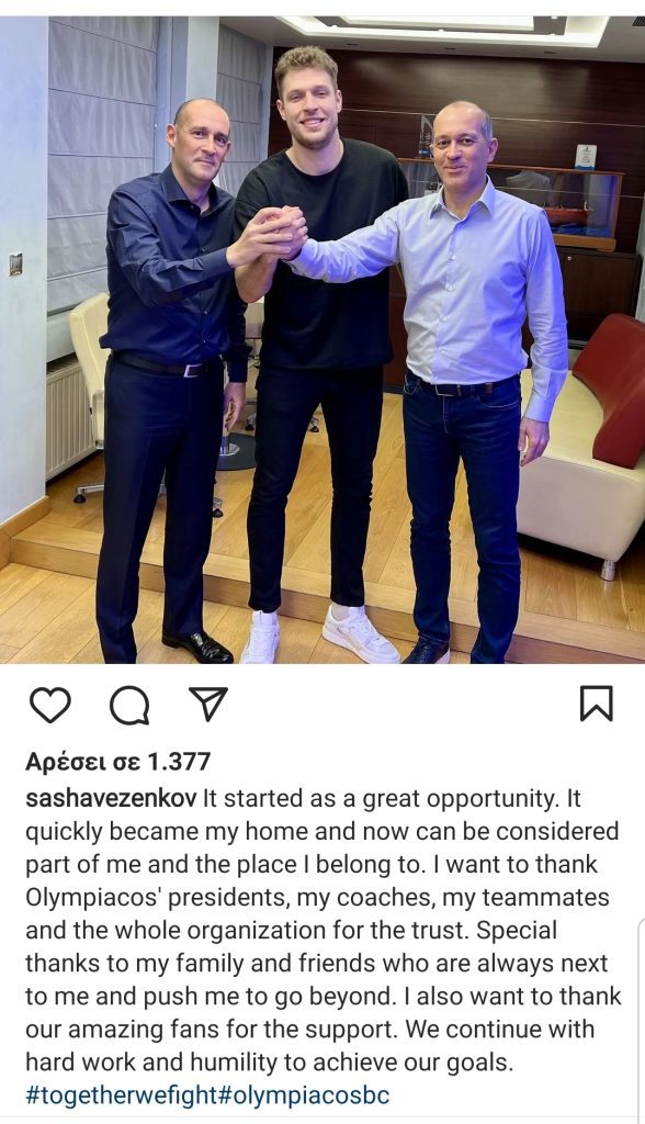 Ολυμπιακός και Σάσα Βεζενκοβ… έδεσαν το μέλλον τους μέχρι το καλοκαίρι του 2025, με τον Βούλγαρο φόργουορντ, αμέσως μετά τις υπογραφές, να στέλνει το μήνυμα του, μέσω Instagram.