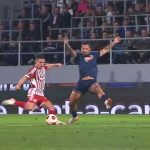 Στο 16′ ο Ολυμπιακός άνοιξε το σκορ όταν ο Ποντένσε έβγαλε την σέντρα για τον Μασούρα, με τον επιθετικό των ερυθρόλευκων με κεφαλιά να πετυχαίνει το γκολ για το 0-1.