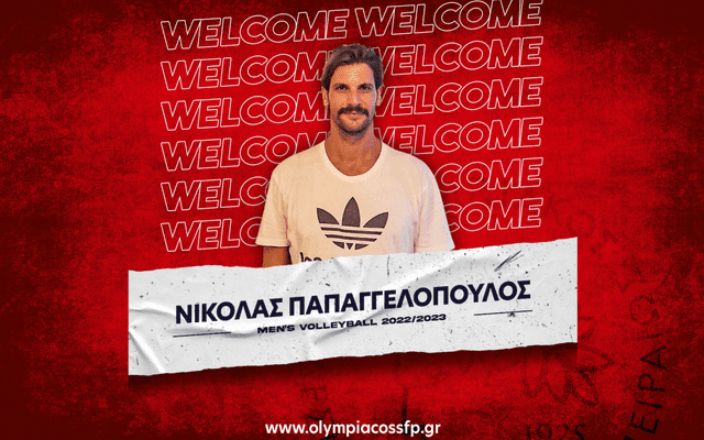 Ο ΟΛΥΜΠΙΑΚΟΣ Σ.Φ.Π. ανακοινώνει την έναρξη της συνεργασίας του με τον Νικόλα Παπαγγελόπουλο. Ο Έλληνας κεντρικός (ημ. γέννησης 17/11/1988, ύψος 2,04μ.,) υπέγραψε το νέο του συμβόλαιο και εντάσσεται στο ρόστερ της ομάδας βόλεϊ Ανδρών του συλλόγου.