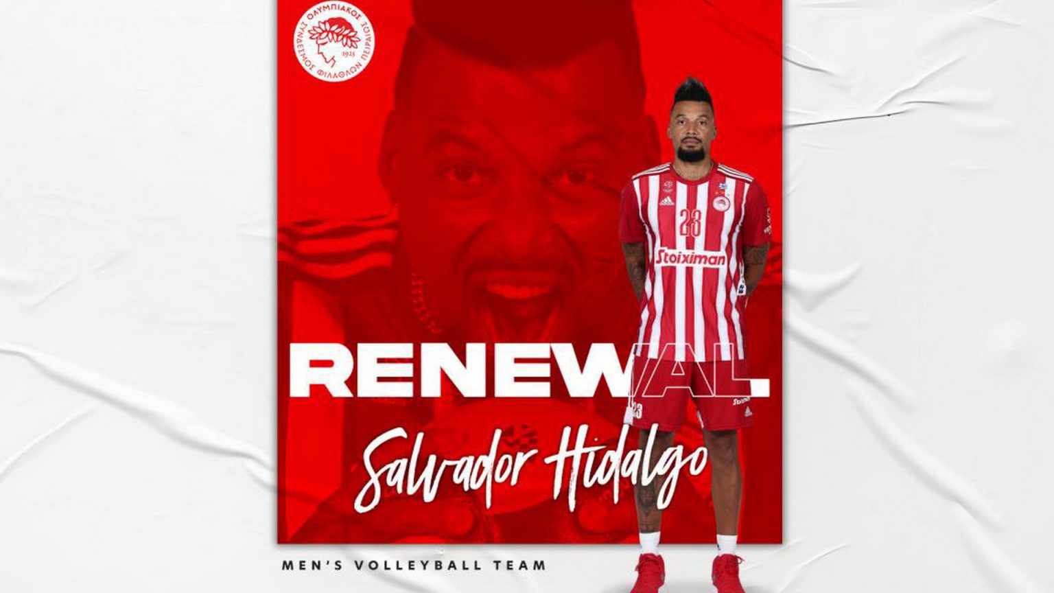 Ο ΟΛΥΜΠΙΑΚΟΣ Σ.Φ.Π. ανακοινώνει την ανανέωση της συνεργασίας του με τον Σαλβαδόρ Ιντάλγκο. Ο Κουβανός ακραίος, με γερμανικό διαβατήριο, υπέγραψε το νέο του συμβόλαιο και παραμένει στο ρόστερ της ομάδας βόλεϊ Ανδρών του συλλόγου.
