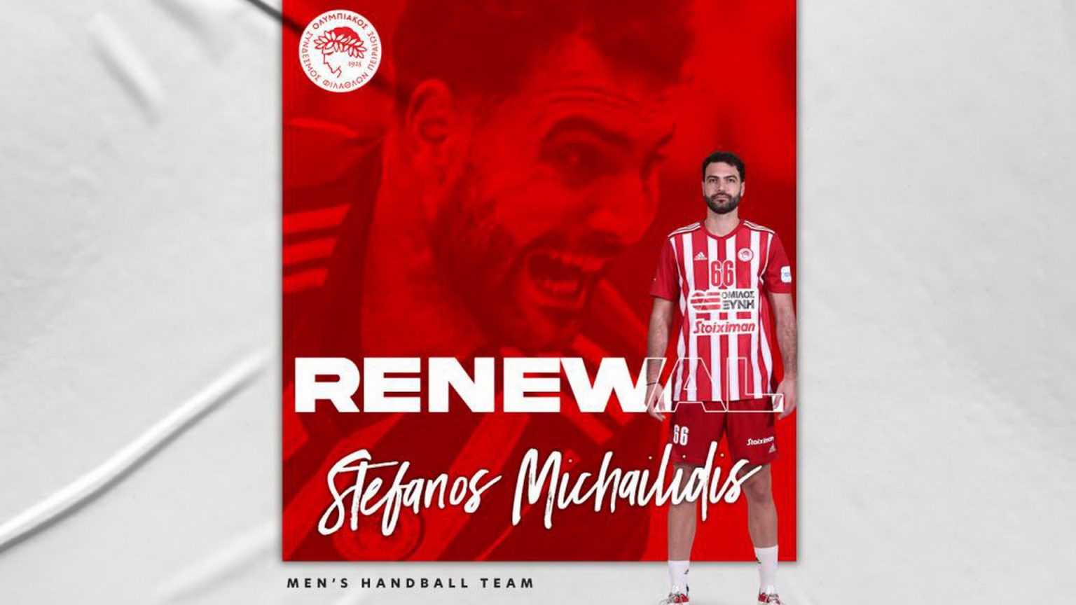 Ο ΟΛΥΜΠΙΑΚΟΣ Σ.Φ.Π. ανακοινώνει την ανανέωση της συνεργασίας του με τον Στέφανο Μιχαηλίδη. Ο διεθνής πίβοτ υπέγραψε το νέο του συμβόλαιο και παραμένει στο ρόστερ της ομάδας χάντμπολ του συλλόγου.