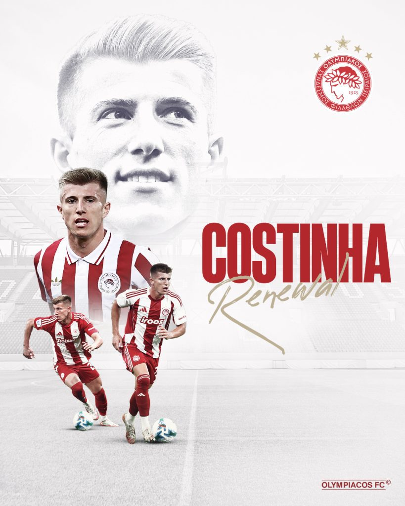 Νέο συμβόλαιο με τον Ολυμπιακό υπέγραψε ο Κοστίνια. Ο ακραίος αμυντικός των ερυθρόλευκων, μετά από το εξαιρετικό ξεκίνημα που έχει κάνει την φετινή σεζόν, κέρδισε την ανανέωση του συμβολαίου του, με τους νταμπλούχους Ελλάδος να τον “δένουν” στο μεγάλο λιμάνι μέχρι το 2029.