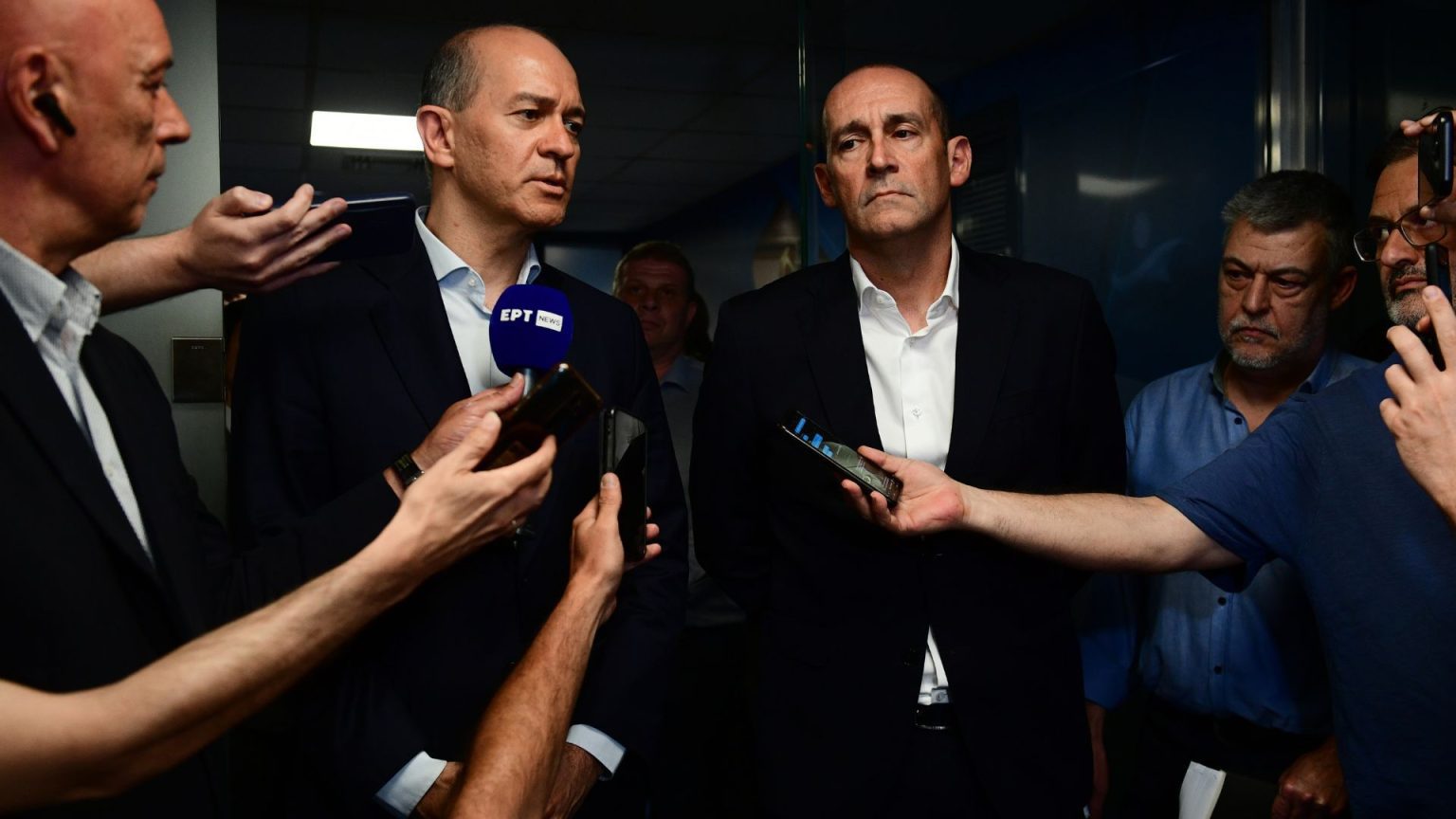 Οι Παναγιώτης και Γιώργος Αγγελόπουλος τοποθετήθηκαν αμέσως μετά το τέλος της συνάντησής του με τον Αναπληρωτή Υπουργό Αθλητισμού, Γιάννη Βρούτση. Οι ισχυροί άνδρες της ΚΑΕ Ολυμπιακός μίλησαν κατά την έξοδό του από το γραφείο του Βρούτση, τονίζοντας ότι