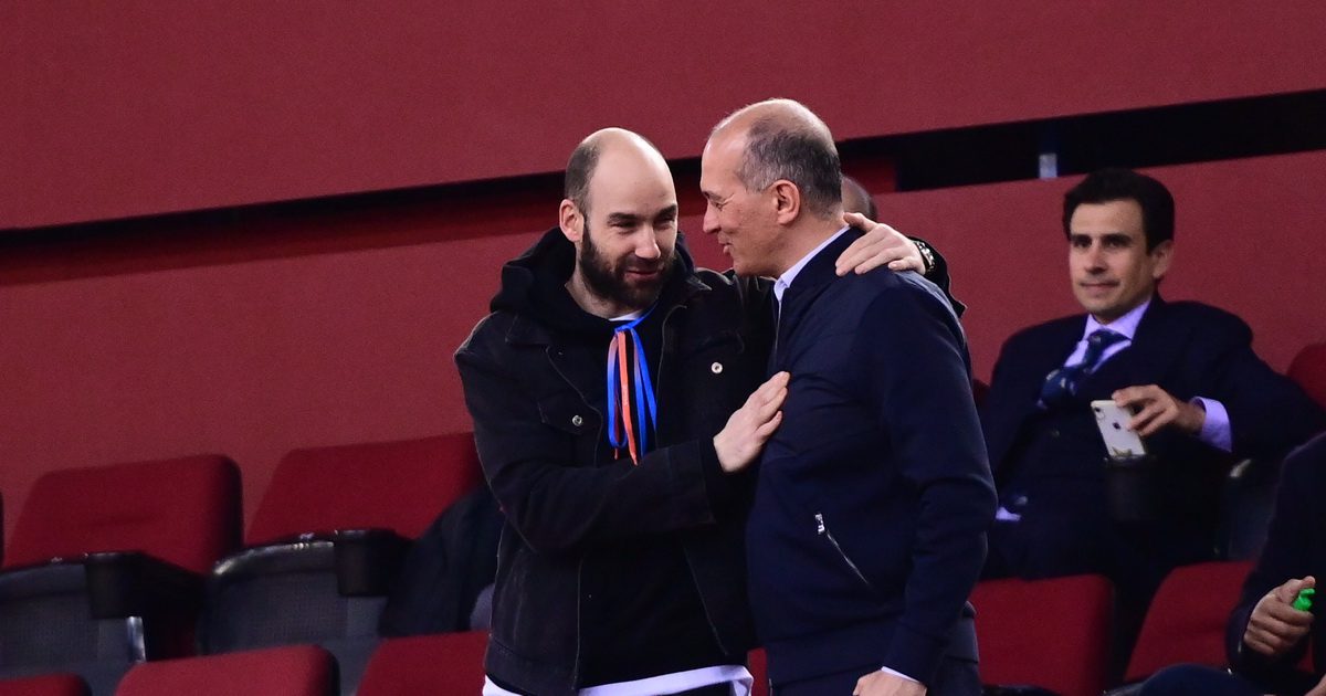 Ο θρύλος του Θρύλου και νυν προπονητής του Περιστερίου, είχε θερμό εναγκαλισμό με τον πρόεδρο της ομάδας, Γιώργο Αγγελόπουλο, ενώ άκουσε το όνομα του να γίνεται, για ακόμα μία φορά, σύνθημα από την ερυθρόλευκη κερκίδα.