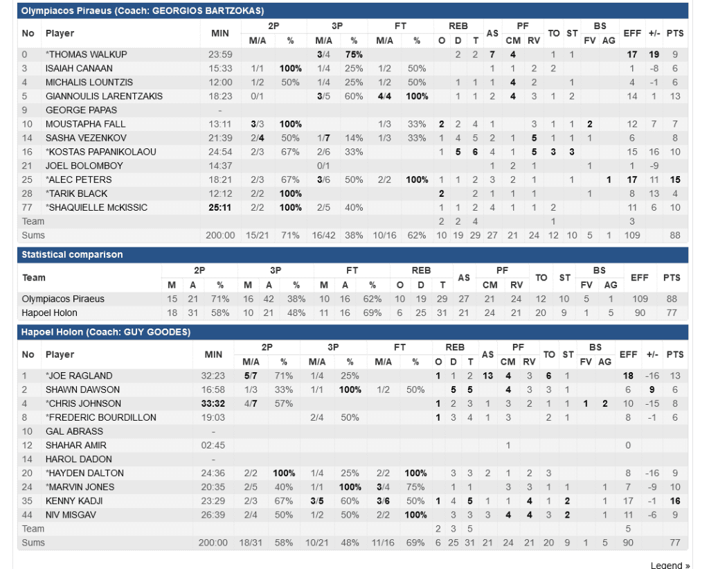 Για την Χάποελ, ο Κάντζι είχε 16 πόντους και ο Ράγκλαν 13 πόντους και ισάριθμες ασίστ.