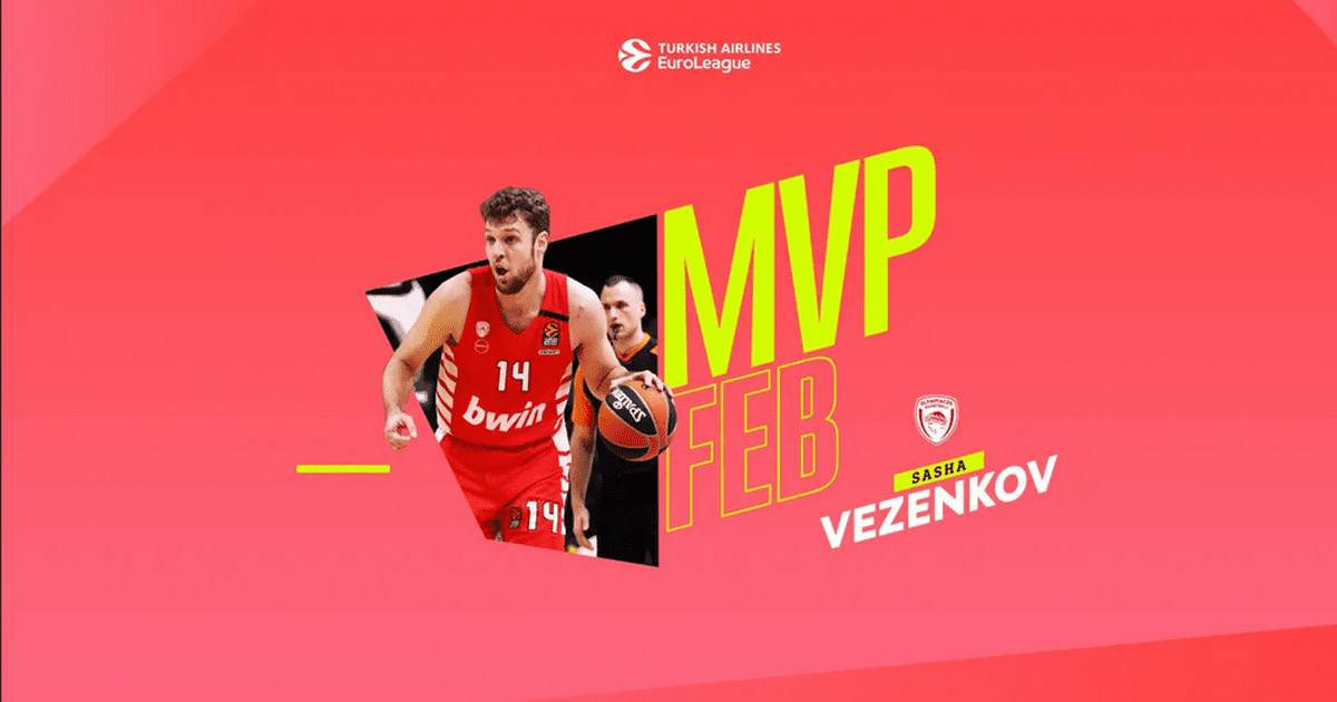 Ακόμα μία διάκριση για τον φοβερό και τρομερό Σάσα Βεζένκοβ, που αναδείχθηκε MVP της Euroleague για τον Φεβρουάριο.