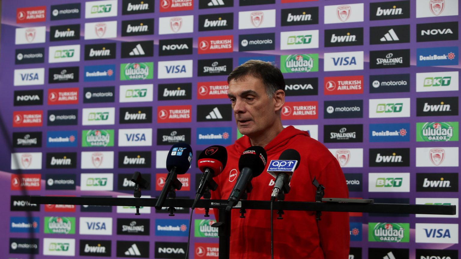 Για το ματς με την Μπάγερν και τα προβλήματα που αντιμετωπίζει η ομάδα: Στην αρχική του τοποθέτηση, ο κόουτς της ομάδας μας, ανέφερε: «Έχει έναν μεγάλο βαθμό δυσκολίας το παιχνίδι, απέναντι σε μια πολύ καλή, επιθετική ομάδα, με scoring γκαρντς που κατευθύνουν το παιχνίδι σε μεγάλο σκορ. Δυστυχώς εμείς είμαστε σε ένα timing που δύο σημαντικοί μας παίκτες, ο Φουρνιέ και ο Παπανικολάου, δεν θα παίξουν αύριο γιατί έχουν γρίπη. Έτσι το rotation θα μικρύνει κι άλλο. Συν κάποια μικρά προβλήματα τραυματισμών που δεν πιστεύω ότι θα γίνουν απουσίες. Έτσι είναι ένα παιχνίδι που έχει δυσκολία, ίσως στο μυαλό το δικό μας λίγο παραπάνω από όσο νομίζει όλος ο κόσμος. Η Μπάγερν αποδεικνύει φέτος ότι η πορεία της έχει σταθερότητα, δεν είναι διάττων αστέρας. Έχει συνέπεια, παίζει πολύ καλά, ιδίως μέσα στο γήπεδό της, αλλά κι έξω, έχει κάνει σημαντικές νίκες. Νομίζω ότι είναι ένα παιχνίδι απαιτητικό για μας και πρέπει να είμαστε έτοιμοι ο καθένας από μας να εκπληρώσει τον ρόλο του για να κερδίσουμε».