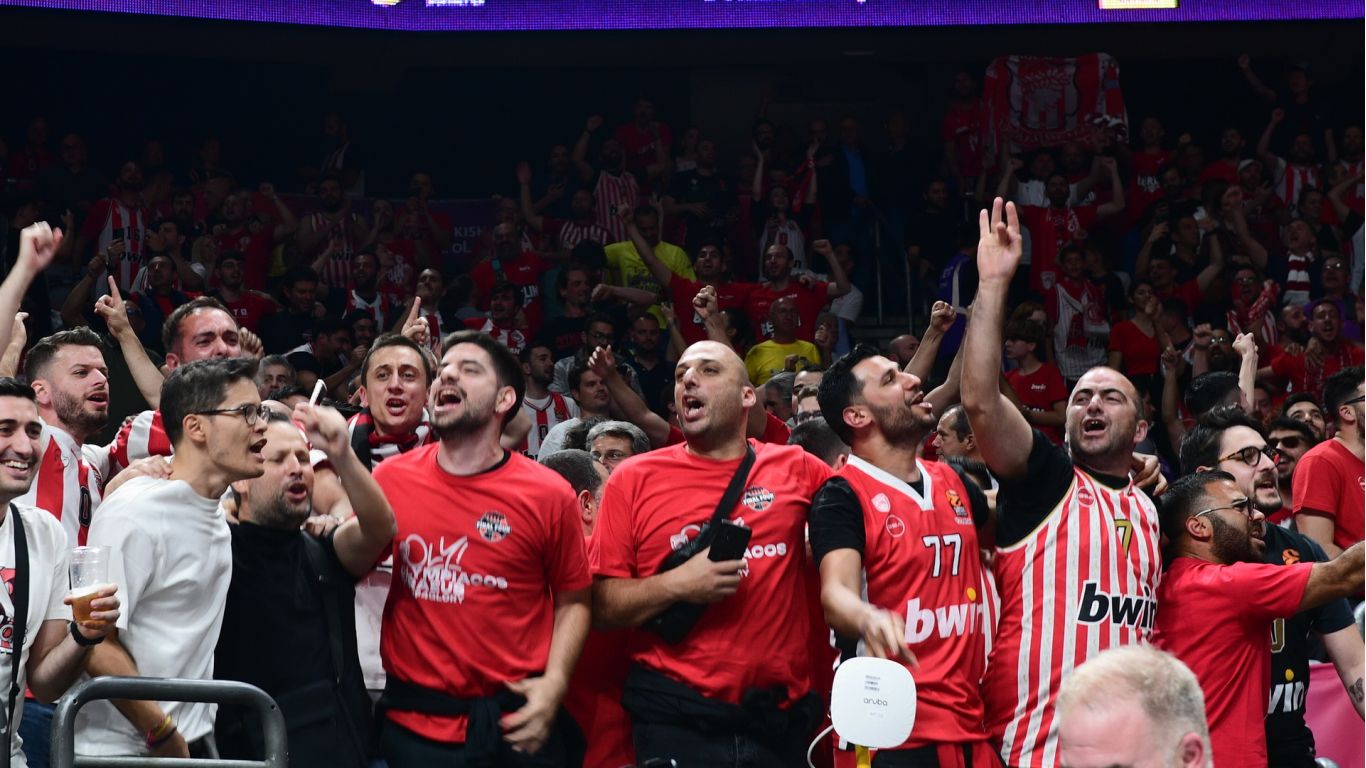 Χιλιάδες φίλαθλοι των Πειραιωτών βρέθηκαν στις εξέδρες της Uber Arena, με την κάμερα του OlympiacosBC TV να καταγράφει το «ερυθρόλευκο»… πάρτι, τόσο έξω από το κλειστό του Βερολίνου, όσο και εντός, με την κόκκινη… λαοθάλασσα να αποθεώνει τον Γιώργο Μπαρτζώκα και τους παίκτες του, πριν αλλά και μετά το φινάλε της αναμέτρησης.