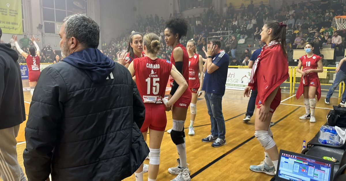 Φυσικά κάτω από τέτοιες συνθήκες δεν μπορεί να παιχτεί βόλεϊ, με τους διαιτητές αλλά και τις δύο ομάδες να πηγαίνουν στα αποδυτήρια.