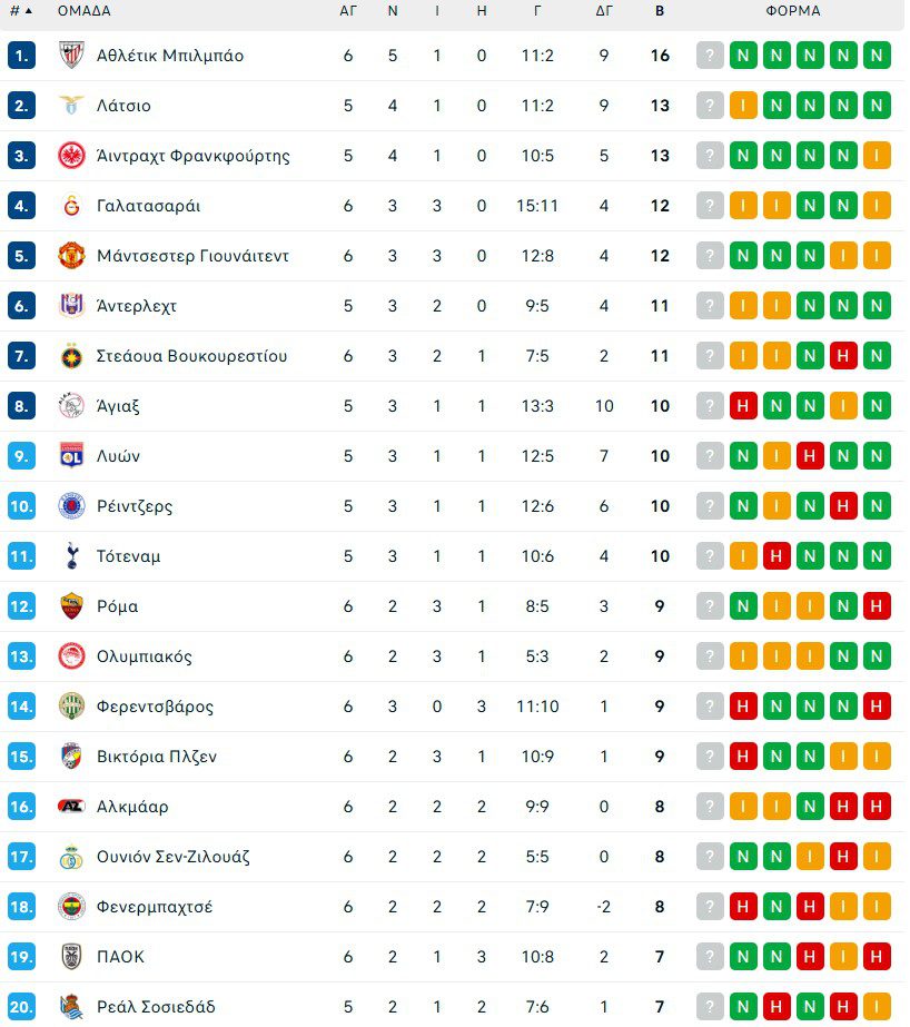 Έτσι, για δεύτερη συνεχόμενη αγωνιστική ο Ολυμπιακός μένει στο 0-0, καθώς είχε προηγηθεί το ματς με τη Στεάουα στη Ρουμανία στις 28/11. Πριν από την ολοκλήρωση της 6ης αγωνιστικής, οι «ερυθρόλευκοι» του Χοσέ Λουϊς Μεντιλίμπαρ βρίσκοται στην 13η θέση σε ένα πολύ μεγάλο γκρουπ 11 ομάδων που συνωστίζονται μεταξύ 10 και 8 βαθμών. Συνεπώς, κάθε πόντος τον Ιανουάριο, θα μετρήσει… χρυσάφι