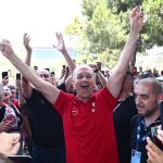 Παροξυσμός στο Στάδιο Ειρήνης και Φιλίας, την στιγμή της άφιξης του Σάσα Βεζένκοβ, ενόψει της συνέντευξης Τύπου με την παρουσίαση του από την ΚΑΕ Ολυμπιακός.