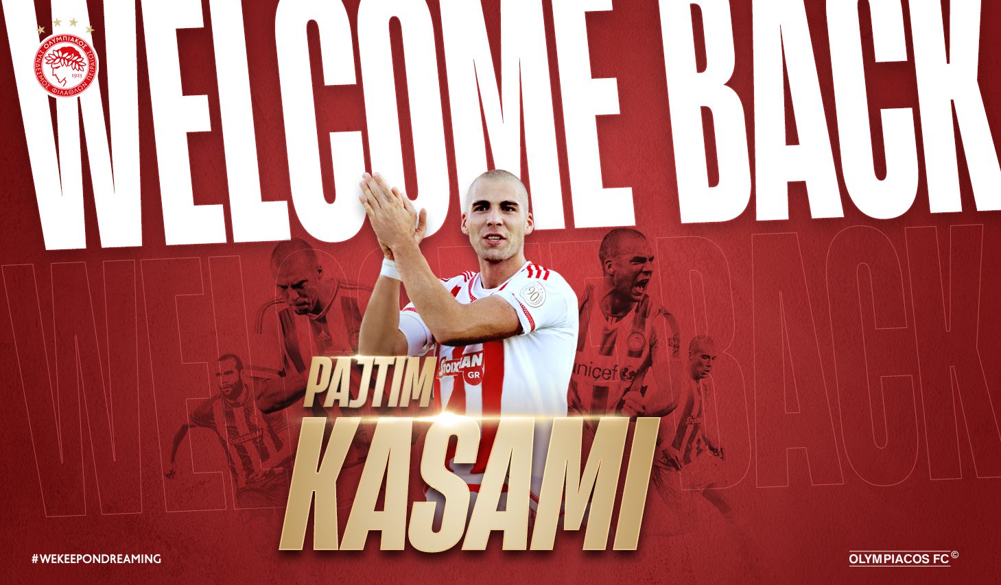 Η ΠΑΕ Ολυμπιακός ανακοίνωσε την απόκτηση του Παϊτίμ Κασάμι. Ο Ελβετός μέσος, γεννημένος στις 2 Ιουνίου 1992, επιστρέφει στους «ερυθρόλευκους» με τους οποίους τη διετία 2014-2016 κατέκτησε δύο πρωταθλήματα και ένα κύπελλο, μετρώντας 66 συμμετοχές και εννέα γκολ. Ο 30χρονος αγωνιζόταν από το 2020 στη Βασιλεία, με τη φανέλα της οποίας σε 79 παιχνίδια πέτυχε 19 γκολ και έδωσε εννέα ασίστ.