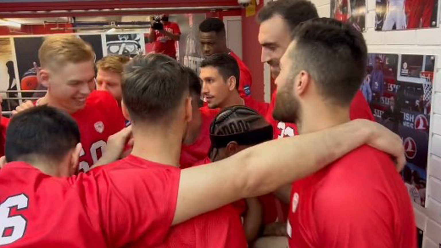 Έτσι, ο Τζορτζ Πάπας έδωσε το σύνθημα με… επίθεση πάνω στον Αϊζάια Κάνααν, με τους παίκτες του Γιώργου Μπαρτζώκα να γίνονται μία αγκαλιά, πριν την είσοδο τους στο παρκέ.