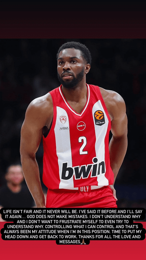 Με story του στο Instagram, ο Αμερικανός γκαρντ που υπέστη ρήξη αχιλλείου στο ευρωπαϊκό του ντεμπούτο με τον Ολυμπιακό, έστειλε το δικό του μήνυμα.