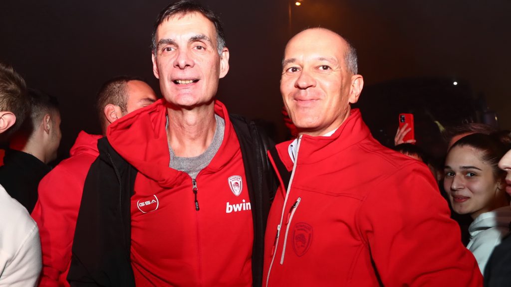 Ανάμεσα τους και οι πρόεδροι της ΚΑΕ, Παναγιώτης και Γιώργος Αγγελόπουλος, που δεν δίστασαν να γίνουν ένα με τον κόσμο, γιορτάζοντας το μεγάλο «διπλό» του Γ. Μπαρτζώκα και των παικτών του.