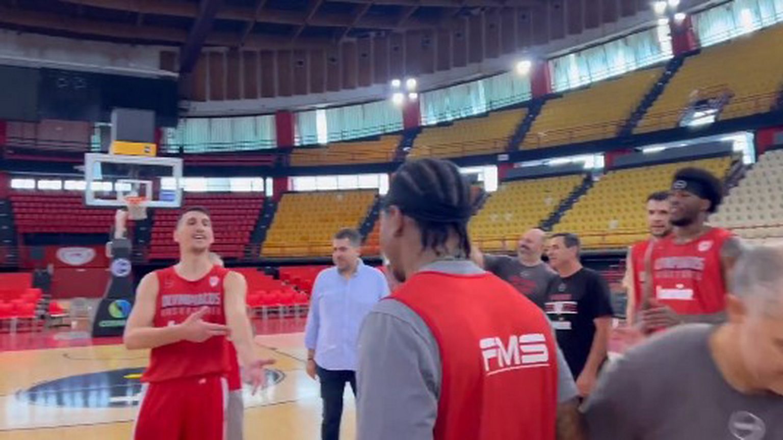 Φυσικά, δεν θα μπορούσε να λείψει η καθιερωμένη – σε τέτοιες περιπτώσεις – τούρτα, όπως και οι ευχές από παίκτες και τεχνικό τιμ, με τους Χρήστο Μπαφέ και Γιαννούλη Λαρεντζάκη να κλέβουν την παράσταση, μιμούμενοι τον χαρακτηριστικό πανηγυρισμό του Αμερικανού γκαρντ.