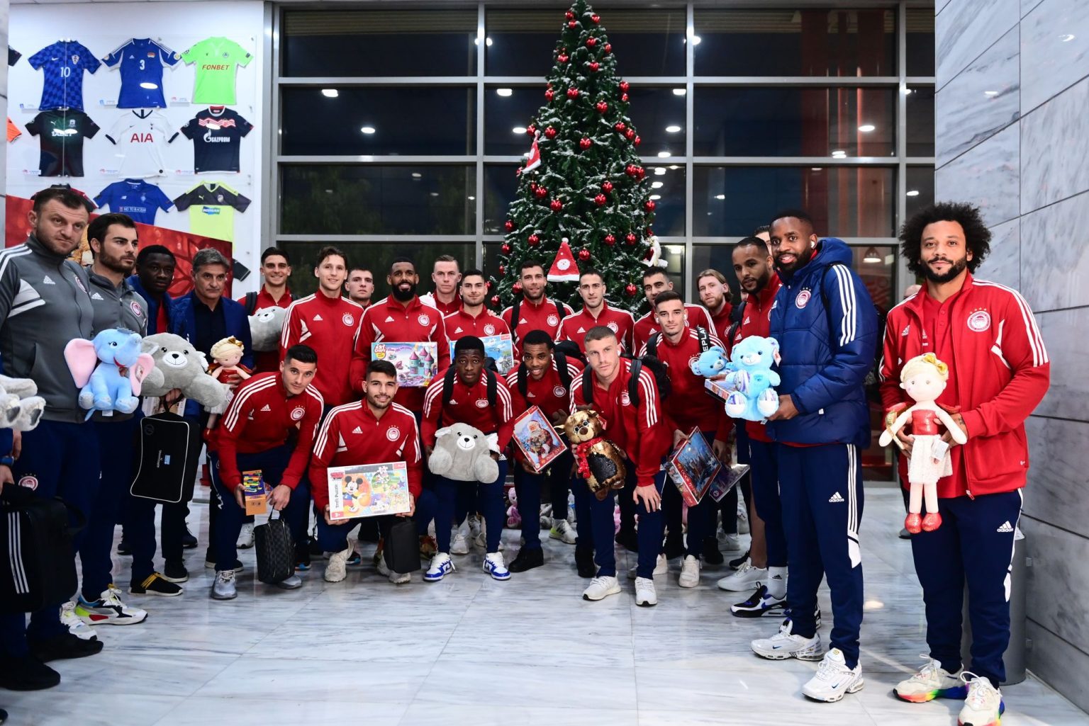 Όλοι οι ποδοσφαιριστές και τα μέλη των τεχνικών τιμ, τη στιγμή που έφτασαν στο «Γ. Καραϊσκάκης», κατέβηκαν από τα πούλμαν με ένα δώρο ο καθένας στο χέρι για να το αφήσει στο χριστουγεννιάτικο δέντρο το οποίο είχε στολιστεί στην είσοδο των επισήμων του γηπέδου. Το δέντρο γέμισε με δώρα για τα μικρά παιδιά από την Ελπίδα, τα οποία θα παραλάβουν τις επόμενες ημέρες.