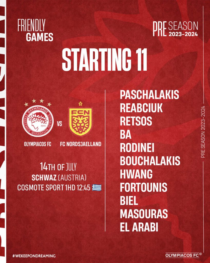 Ο Ολυμπιακός αντιμετωπίζει στις 12.45 τη Νόρτζελαντ με τον Ντιέγκο Μαρτίνεθ να παρατάσει την ακόλουθη 11άδα: