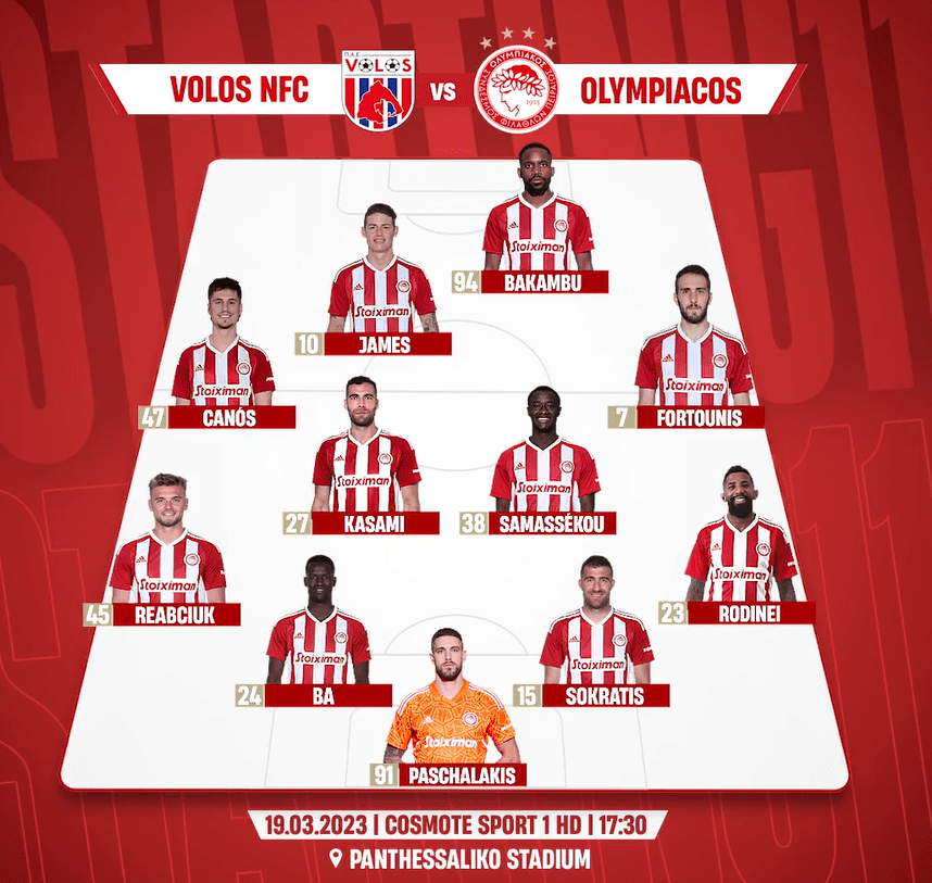 Ο Ολυμπιακός θα παραταχθεί στην πρεμιέρα των πλέι οφς με αντίπαλο τον Βόλο με την ακόλουθη 11άδα: