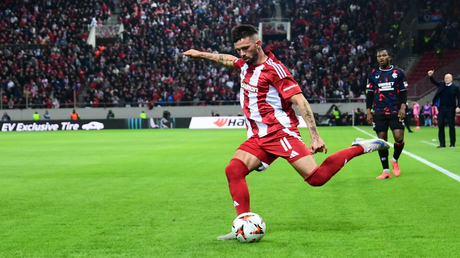 Η ενδεκάδα του Ολυμπιακού: Τζολάκης, Ρόντινεϊ, Ρέτσος, Κάρμο, Ορτέγκα, Γκαρθία, Μουζακίτης, Κωστούλας, Τσικίνιο, Βέλντε, Γιάρεμτσουκ.
