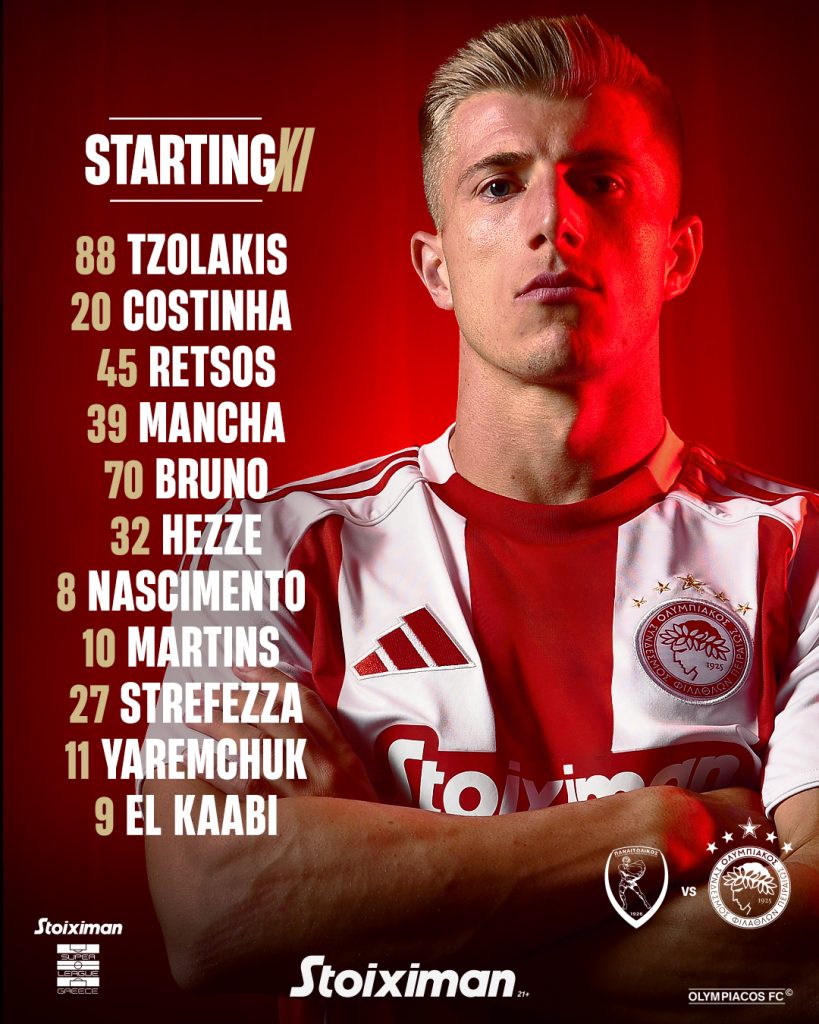Τζολάκης – Κοτσίνια, Ρέτσος, Μάντσα, Μπρούνο – Μαρτίνς, Έσε, Νασιμέντο, Στρεφέτσα – Γιάρεμτσουκ, Ελ Κααμπί.