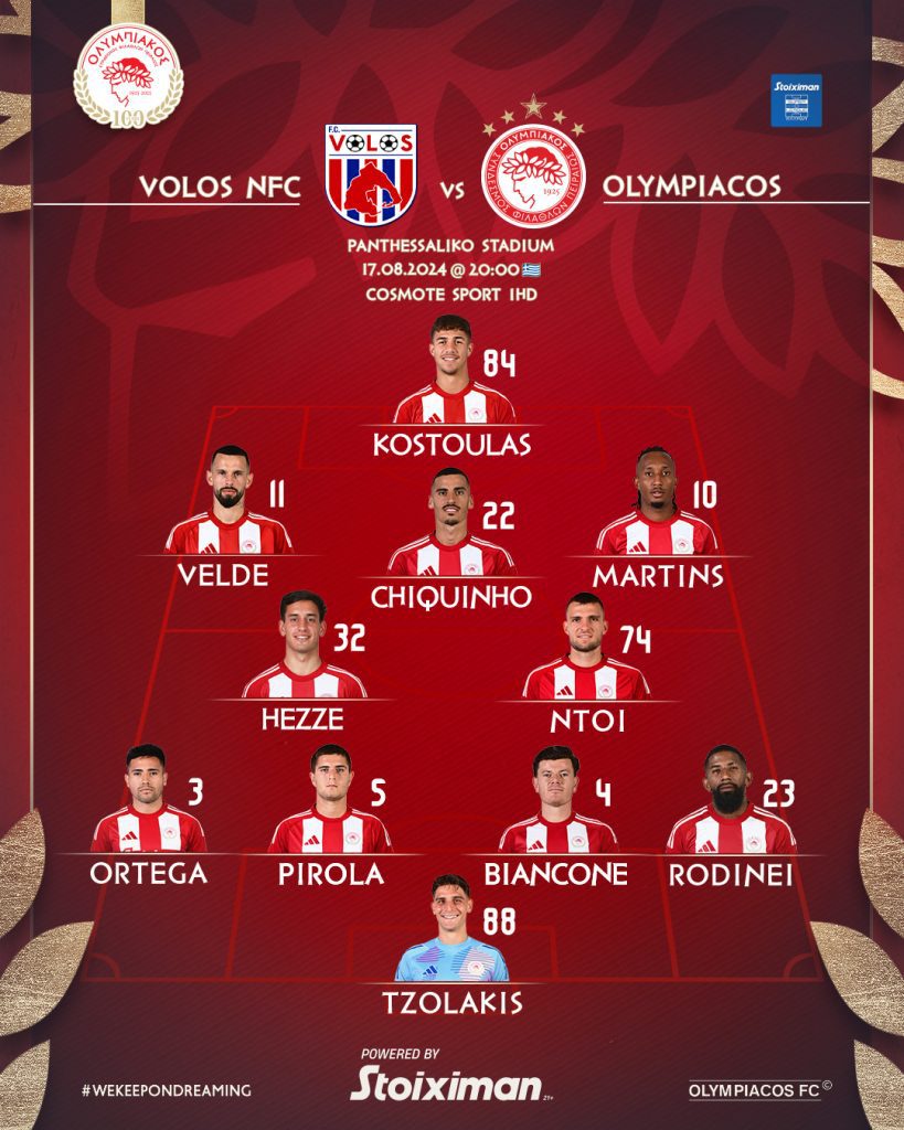 Ο Ολυμπιακός αντιμετωπίζει στις 20.00 (Cosmote) τον Βόλο, στην πρεμιέρα της Superleague, με τον Χοσέ Λουίς Μεντιλίμπαρ να παρατάσει τους ερυθρόλευκους με την ακόλουθη 11άδα:
