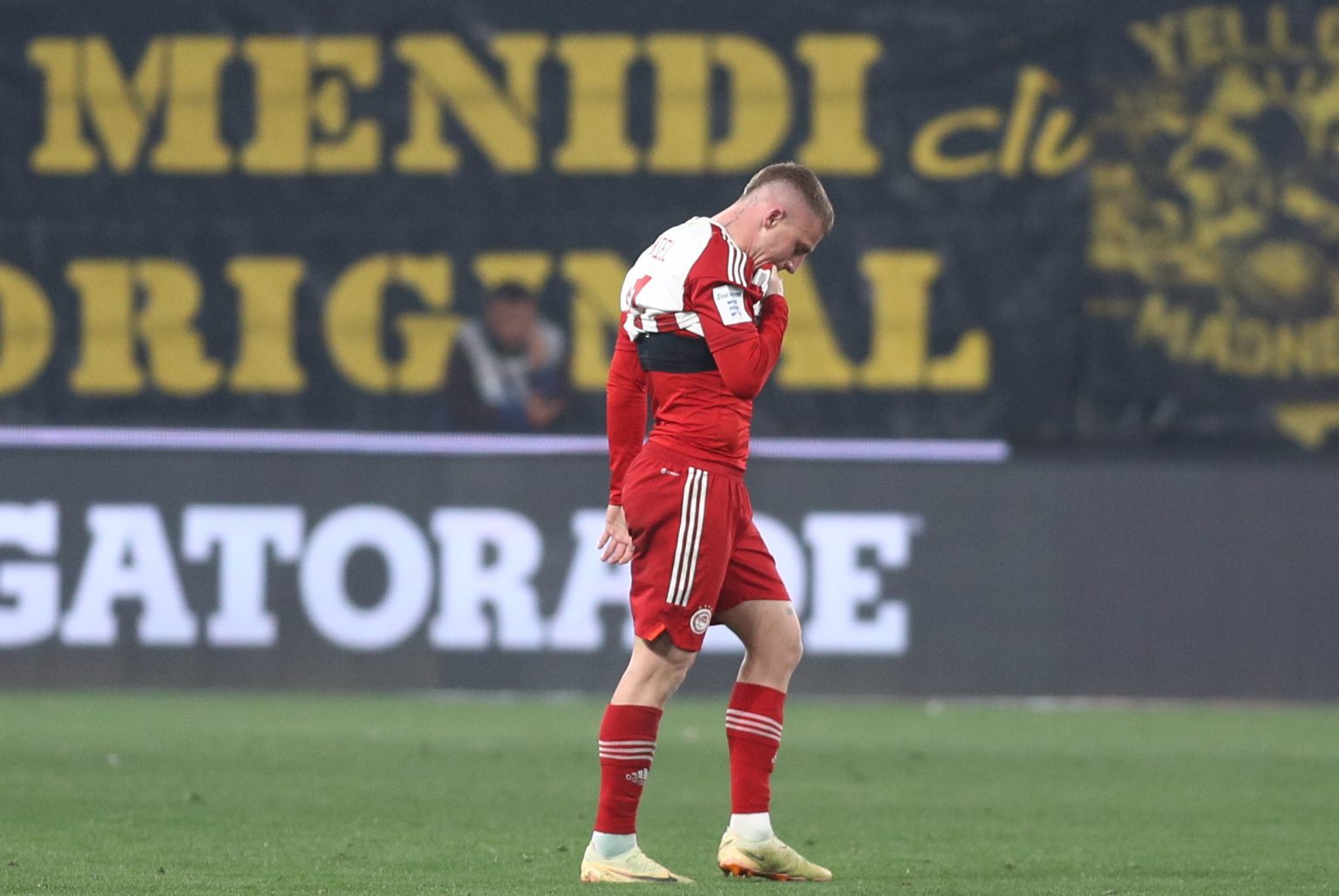 Στο 70’ ο Μπιέλ πήγε με τις τάπες πάνω στον Αραούχο και αποβλήθηκε με απευθείας κόκκινη κάρτα αφήνοντας τον Ολυμπιακό με δέκα παίκτες για το υπόλοιπο του παιχνιδιού.
