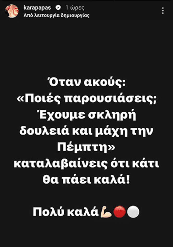 «Όταν ακούς «ποιες παρουσιάσεις; Έχουμε σκληρή δουλειά και μάχη την Πέμπτη» καταλαβαίνεις ότι θα πάει καλά! Πολύ καλά», έγραψε σχετικά.