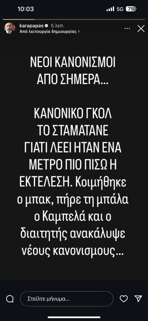 Είναι χαρακτηριστικές οι δύο αναρτήσεις του Κώστα Καραπαπά στην ανάπαυλα. Μια για κάθε περίπτωση. Και τα λόγια είναι μάλλον περιττά.