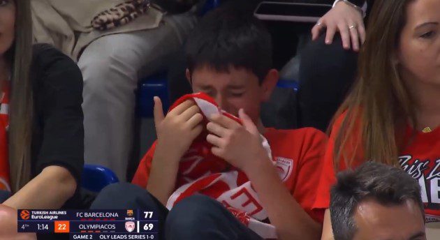 Με το πλάνο ενός μικρού φίλου του Ολυμπιακού που έβαλε τα κλάματα βλέποντας την ομάδα του να χάνει στο Game 2 στη Βαρκελώνη καλημέρισαν τους φίλους τους οι «ερυθρόλευκοι».