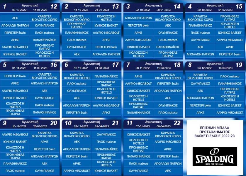 Απόλλων Π. (εκτός), Περιστέρι (εντός), Αρης (εκτός), Λαύριο (εντός), Ιωνικός (εκτός), Κολοσσός (εντός), Προμηθέας (εκτός), Παναθηναϊκός (εντός), ΠΑΟΚ (εκτός), Καρδίτσα (εκτός), ΑΕΚ (εντός).