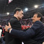 Στη συνέχεια έδωσε μια αγκαλιά με τον Χοσέ Λουίς Μεντιλίμπαρ και είπε για εκείνον: “Ξέρετε τι μου αρέσει από εκείνον; Ανανεώσαμε τη συμφωνία μας όταν χάσαμε 1-4 στο Καραϊσκάκης γιατί μας αρέσουν τα δύσκολα και μας αρέσει να κερδίζουμε σε δύσκολες συνθήκες”.