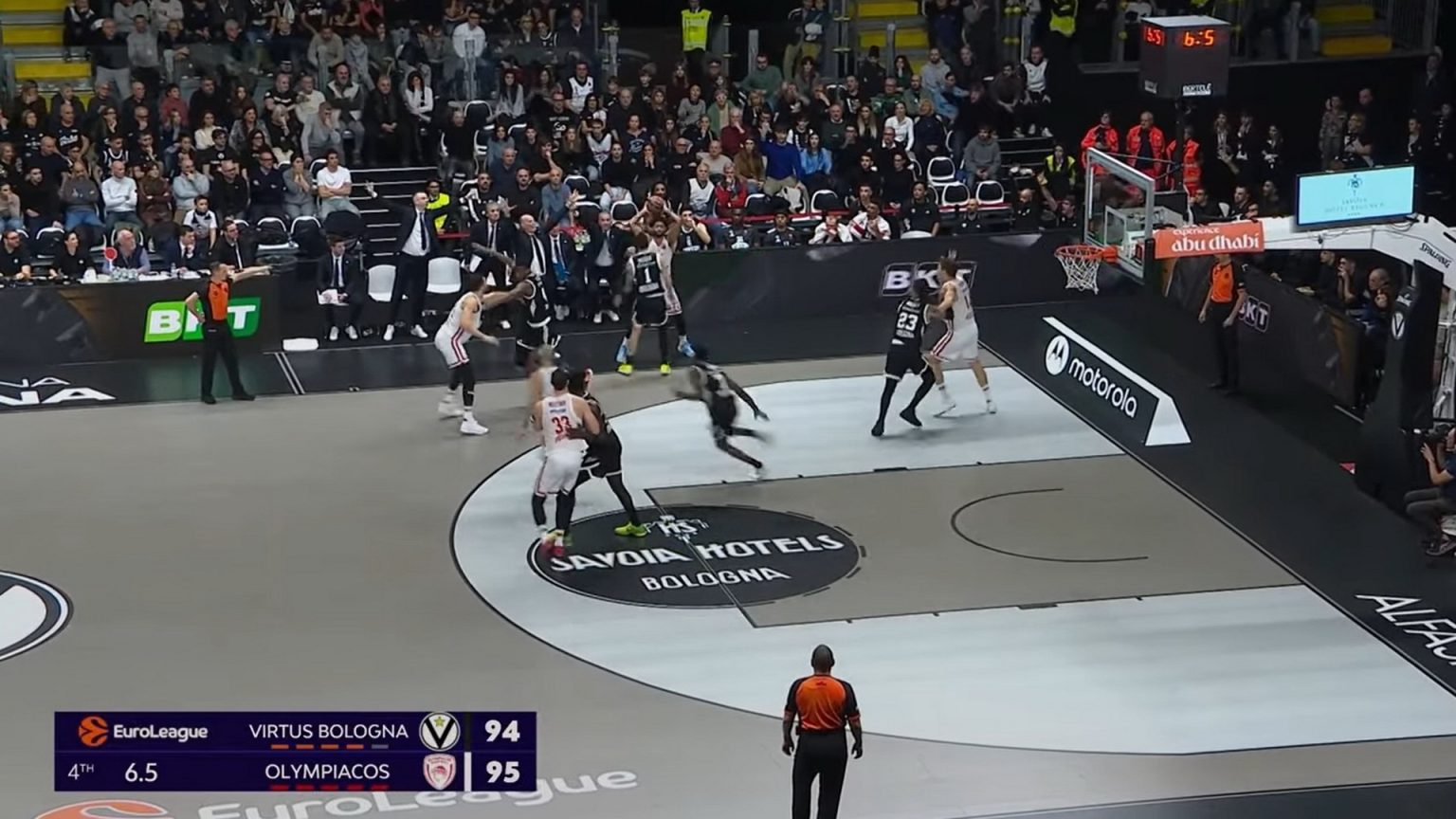 Ο Ολυμπιακός έφυγε νικητής από την Μπολόνια, απέναντι στην Βίρτους με 97-94, ενώ πολύς ντόρος έγινε για την φάση στα 6,5’’ πριν το φινάλε, με τους Ιταλούς να διαμαρτύρονται για παράβαση 5’’, στην επαναφορά του Τάιλερ Ντόρσεϊ.