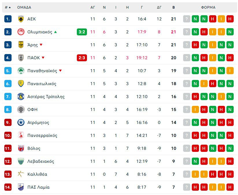 ΠΟΔΟΣΦΑΙΡΟ Η βαθμολογία στην Superleague μετά από 11 αγώνες Last updated: 10/11/2024 10:26 ΜΜ REDNEWS Team Published: 10/11/2024 Κοινοποίηση SUPERLEAGUE 2024-2025 / ΠΑΟΚ - ΟΣΦΠ (ΠΑΥΛΟΣ ΜΑΚΡΙΔΗΣ / MEGA PRESS) Κοινοποίηση Ο Ολυμπιακός με τη νίκη του επί του ΠΑΟΚ με 3-2 έπιασε κορυφή στην βαθμολογία της Superleague μετά από 11 αγώνες. Μπαφές: «Το παρκέ δεν έχει κάποιο θέμα, αλλά το πρόβλημα ήταν εξωτερικά στις θύρες, προέχει η ασφάλεια των ανθρώπων που έρχονται στο γήπεδο» Θρυλικό… χαστούκι στον «αιώνιο» και πρόκριση στον τελικό του League Cup Μεντιλίμπαρ: «Δεν μας άφησαν να είμαστε χαλαροί σε καμία στιγμή» Εμφατικό πέρασμα από την Σύρο με 5-2 Μπαρτζώκας για μεταγραφολογία: «Απασχολεί όλη την ελληνική κοινωνία» TAGGED:top VIDEO Κοινοποίηση άρθρου Facebook Whatsapp Whatsapp Copy Link ByREDNEWS TeamΑκολουθήστε:Είσαι στο μυαλό κάτι μαγικό όπου πας εσύ πάντα θα μαι εγώ να σου τραγουδώ Θρύλε ολέ, ολέ, Θρύλε ολέ, ολέ... Επομενο θεμα Μέγας είσαι Θρύλε, ταπείνωσε με 3-2 τον ΠΑΟΚ και έπιασε κορυφή Προηγουμενο θεμα Μπαρτζώκας: «Αν είσαι αδιάφορος όταν δεν παίζεις πολύ, σημαίνει ότι δεν έχεις εγωισμό και ότι δεν έχεις κίνητρο» Rednews Youtube Ροή Ειδήσεων Η ανακοίνωση της Euroleague για την αναβολή του Ολυμπιακός – Φενέρ OLYMPIACOS BC 04/12/2025 Βρούτσης: «Η αναβολή έγινε καθαρά για λόγους ασφάλειας» OLYMPIACOS BC 04/12/2025 Αναβολή λόγω κακοκαιρίας στο Ολυμπιακός – Φενέρμπαχτσε OLYMPIACOS BC 04/12/2025 Γουόρντ για το ματς με Φενέρμπαχτσε: «Είναι περισσότερο θέμα του τι θα κάνουμε εμείς» OLYMPIACOS BC 03/12/2025 Χολ: «Να παίξουμε με καλύτερο mindset» OLYMPIACOS BC 03/12/2025 «Εξαφανίζονται» τα εισιτήρια με την Φενέρμπαχτσε OLYMPIACOS BC 03/12/2025
