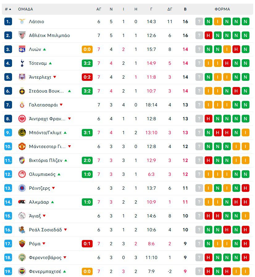 Ο Ολυμπιακός με τη νίκη του επί της Πόρτο με 1-0 βρίσκεται στην 12η θέση της League phase του Europa League με 12 βαθμούς. Οι ερυθρόλευκοι έχουν προκριθεί στα πλέι οφ της διοργάνωσης, όμως με νίκη την επόμενη Πέμπτη κόντρα στην Καραμπάχ θα μπορούν να ελπίζουν σε στραβοπάτημα των ομάδων που βρίσκονται πιο πάνω από αυτόν στην βαθμολογία, έτσι ώστε να πάρουν απευθείας το εισιτήριο στους “8”, κάτι που πάντως φαντάζει δύσκολο.